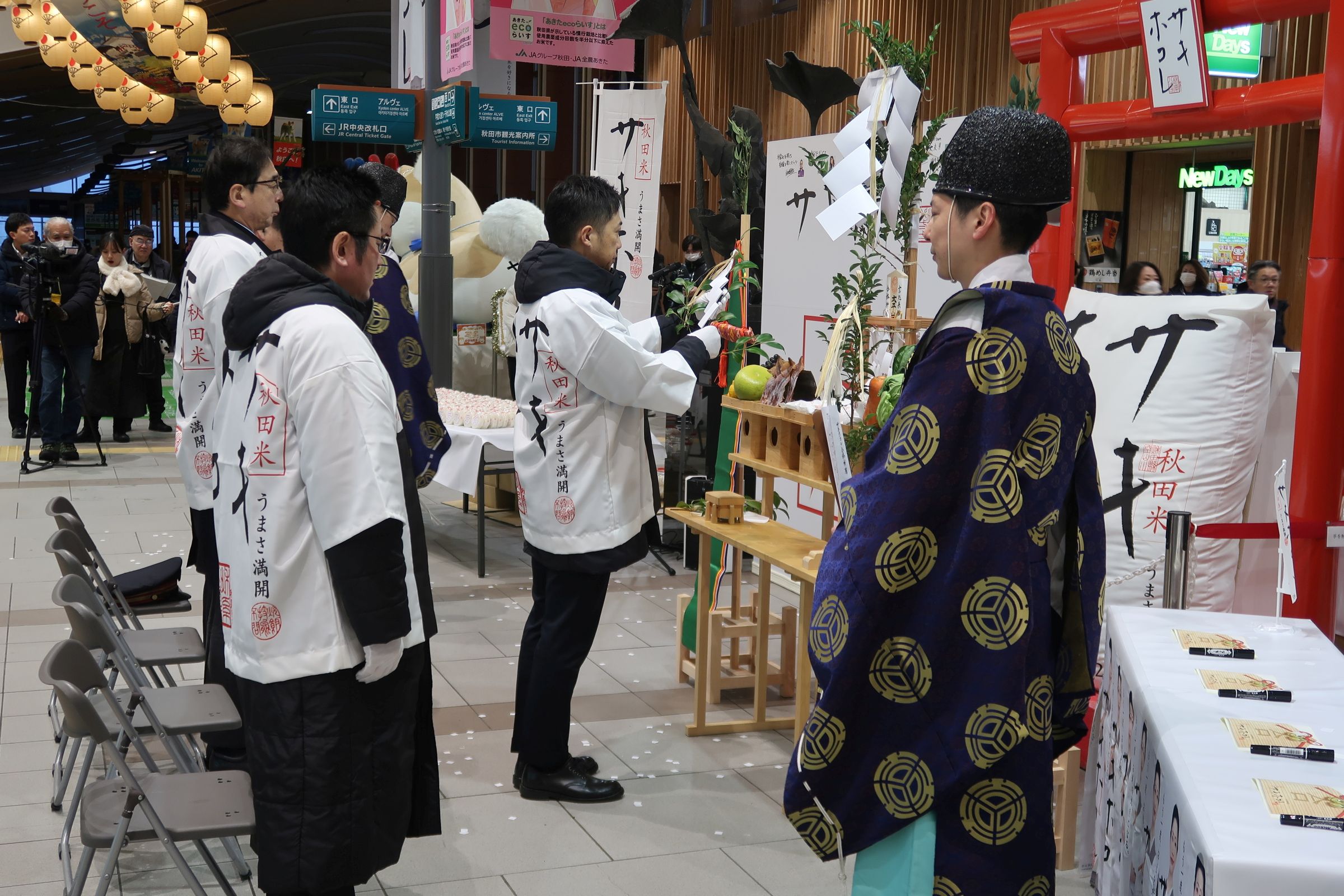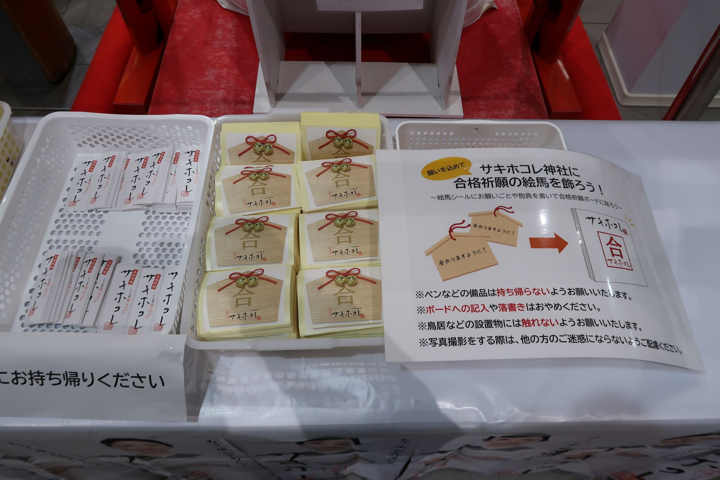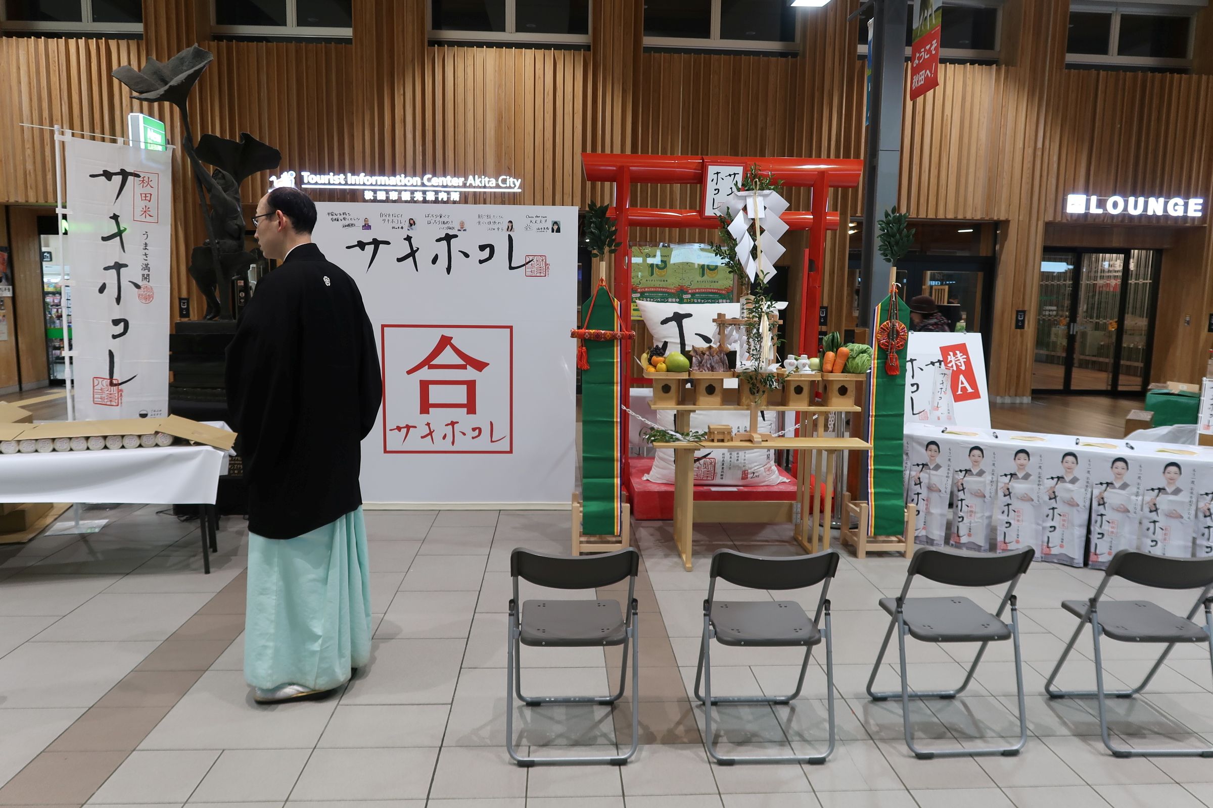JR秋田駅でサキホコレ合格祈願祭を開催しました。 3/23まで改札口前に鳥居と合格祈願メッセージボードを設置していますので、絵馬シールに願い事を書き込み、ボードに貼り付けて合格祈願をしてください! 鈴木知事や壇蜜さん、サキホコレアンバサダーの皆さまからの応援メッセージも見られますよ。
