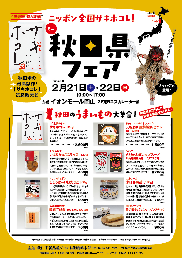 ニッポン全国サキホコレ!秋田フェア【岡山県に出店します!】