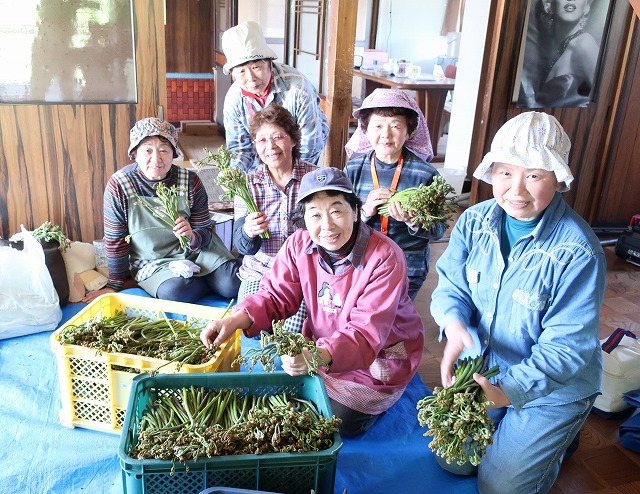 プロジェクトが進むと同時に森林が整備され、昔から豊富であった山菜が見つけやすくなっていきました。足下にある木材を活用したプロジェクトを見ていたお母さんたちは、同じように足下にある宝物、山菜も活用できるのではないかと行動を開始しました。
