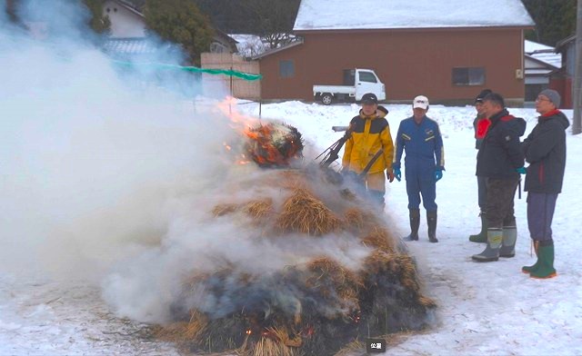 集落の子どもたちが主体となり、五穀豊穣、無病息災、安産祈願などを祈るもので、長年、1月15日に行われてきた「サエの神小屋焼き」「鳥追い」「餅もらい」などをひっくるめた「小正月行事」です。昨今は日にちが固定された平日は集まりづらいということで、1月第2月曜日(祭日・成人の日)に行われています。