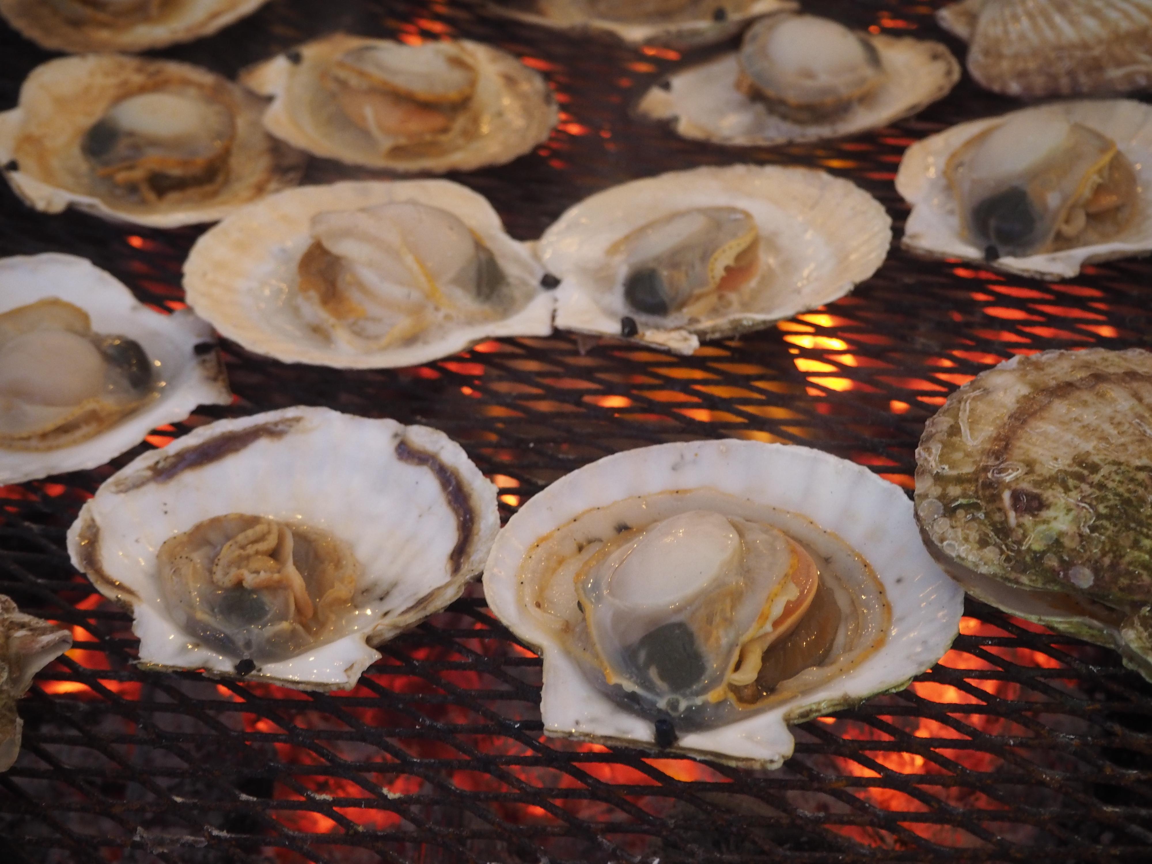 大ぶりのホタテが次々と炭火で焼かれていきます!