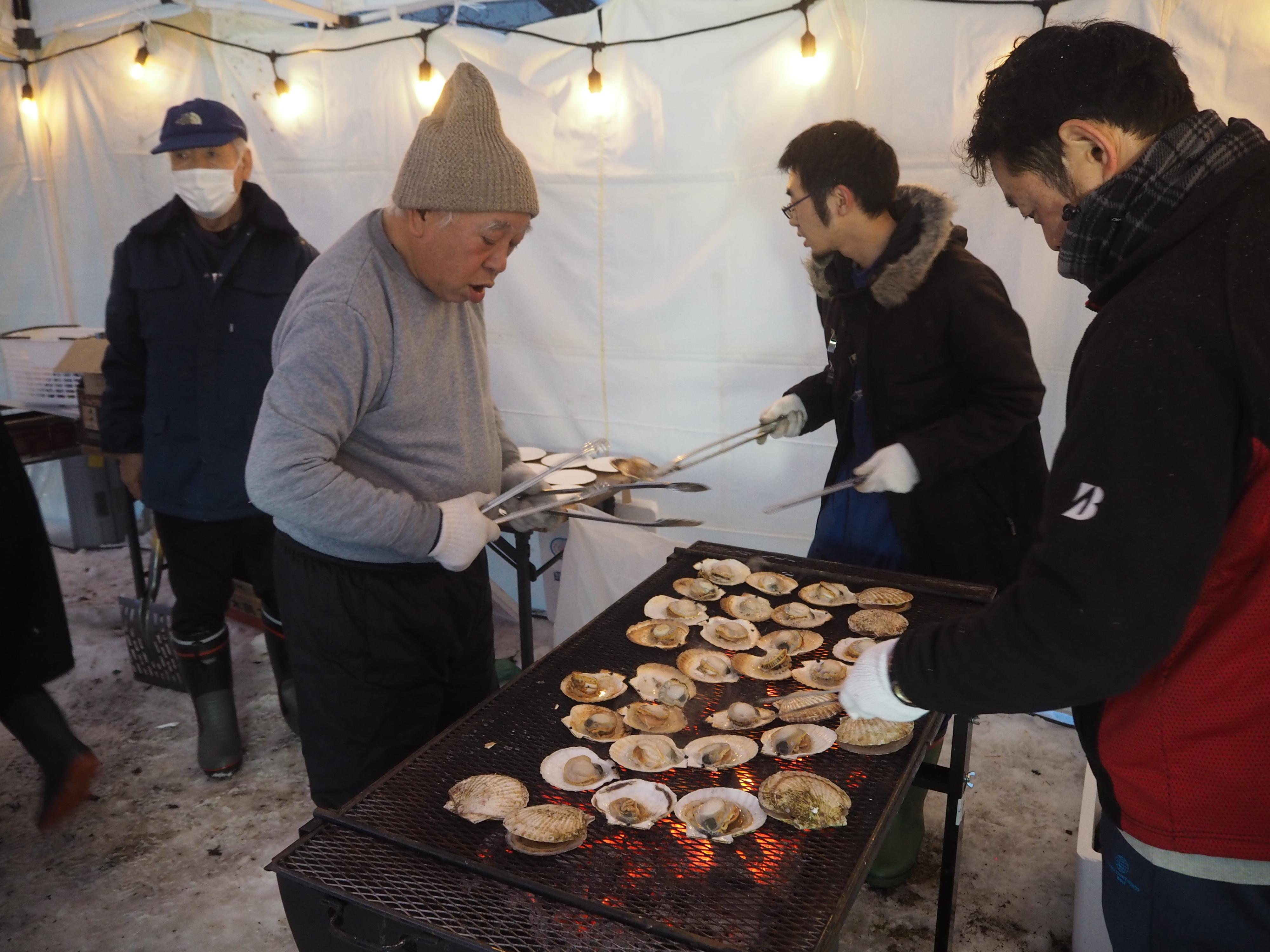 みなさん美味しそうに、アツアツのほたてを頬張っています^^
