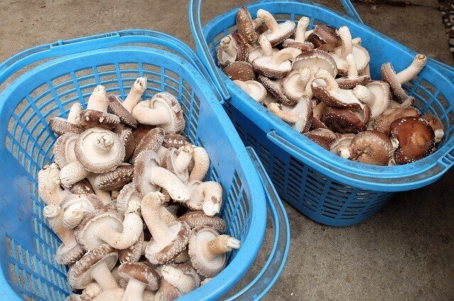 スーパーに並んでいるしいたけは、「菌床」での栽培が主ですが、「原木しいたけ」は木から直接生えてくる“しいたけ”。その独特の香りと肉厚な歯ごたえは、まさに本物の“しいたけ”で石塚さんの朝は、前日にビニールハウス(以下:ハウス)内から採取したしいたけを、出荷のために選別し、袋詰めするところから始まります。1~3月を除いては、ほぼ毎日、この作業を繰り返しているそうですよ。