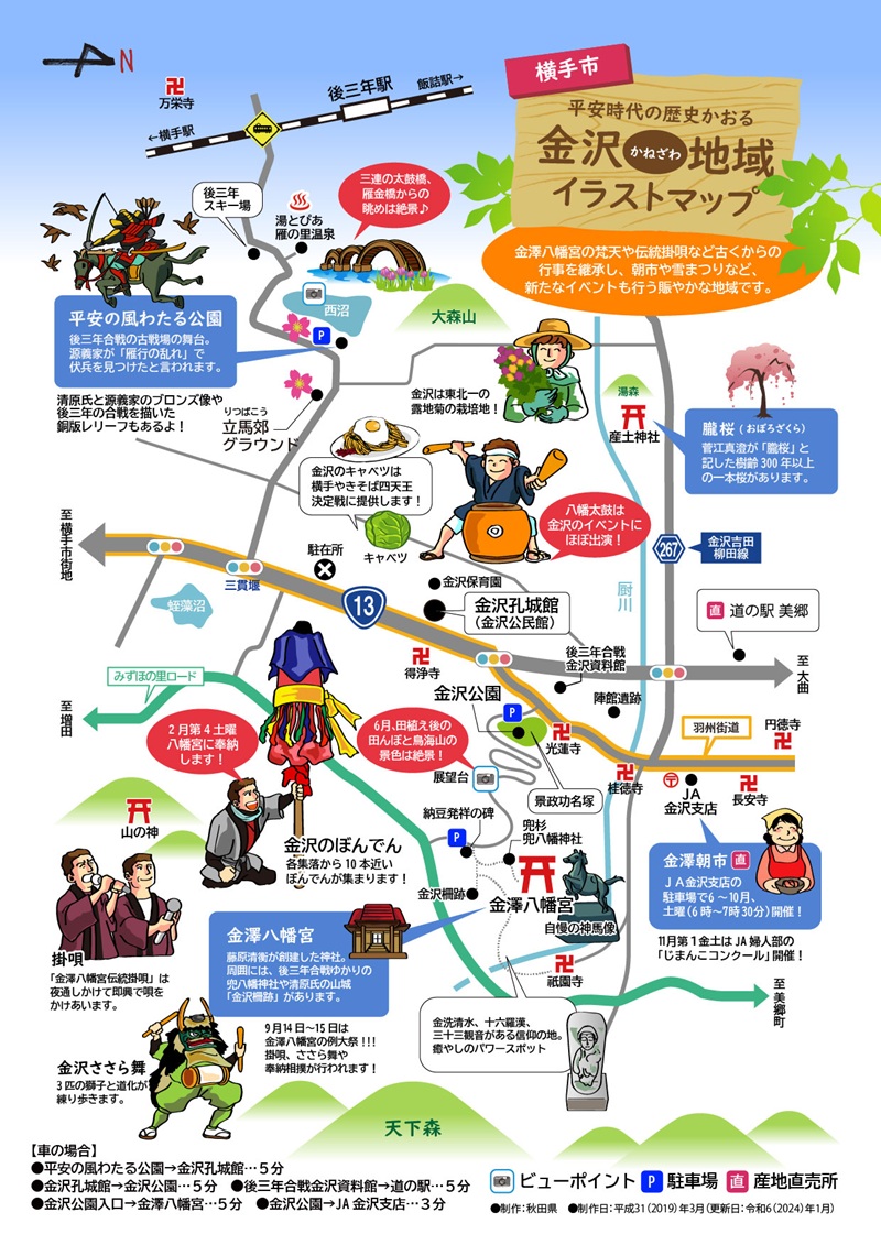 横手市金沢(かねざわ)地域は、国道13号沿いに位置し、横手市の北部、美郷町仙南地区に隣接する地域です。
