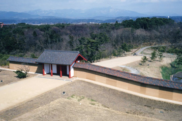 高さは、連接する築地塀と同じ3.6mであったと考えられ、現在整備されている石塁の倍以上となり、壮麗な景観が想像できます。