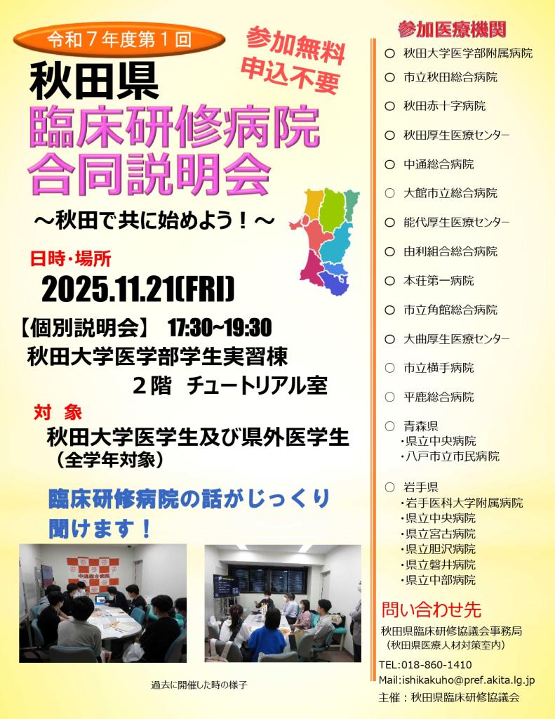 県内の臨床研修病院が一堂に会する合同説明会を開催します。各病院の特徴をじっくり聞くことができる機会となりますので、医学生の方はぜひ御参加ください!