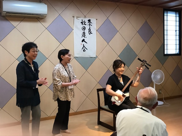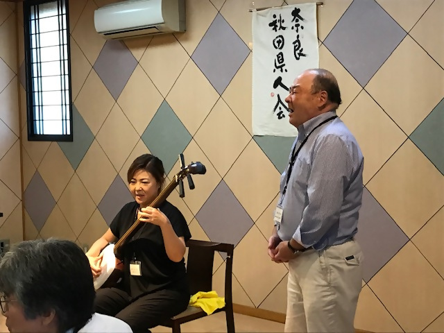 和やかに宴は進み、梅若さんが雨の中持参していただいた三味線で民謡をご披露。