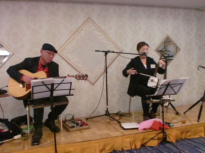 宴もたけなわの頃、今年は岸本先生のギターと梅若さんの和製胡弓、津軽三味線による豪華ライブです。