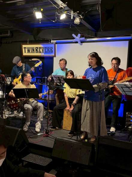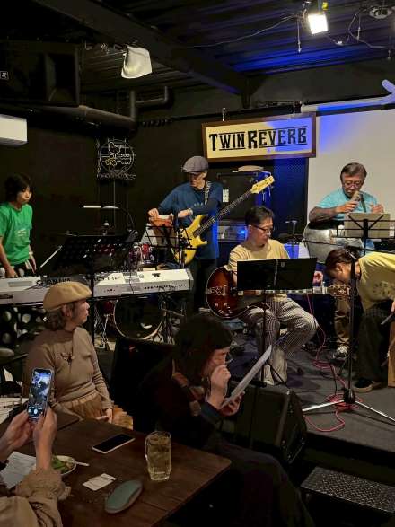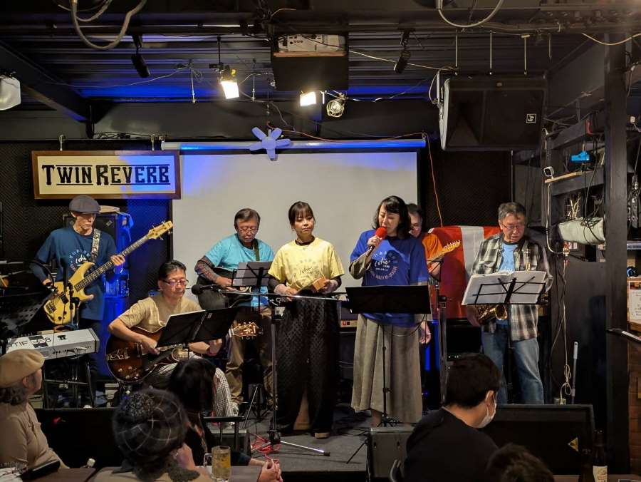昨年は演奏者が6名でしたが、今回は新規メンバーを加えて8名で大阪吹田市江坂の “TWIN REVERB” さんをお借りし、よりバージョンアップしたステージとなりました。