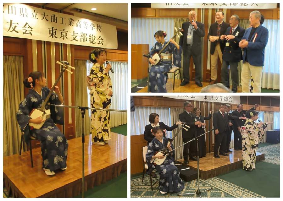 しばく歓談後、美郷町出身の民謡歌手美郷あやめさんと、津軽三味線師範の小山篤希子さんによる民謡ショーが賑やかにスタートしました。