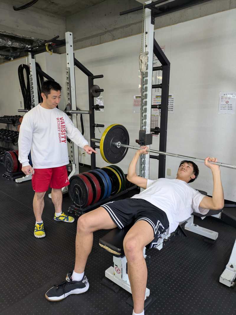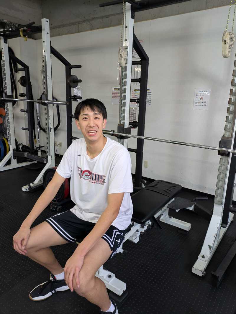福岡・秋田県人会会員の川村正伸さんが福岡市博多区で経営するトレーニングジム、「バーシティウエイトルーム」で、福岡大学大濠高校のバスケットボールチーム選手、加賀屋利温(としあつ)さんが2月25日(水)、トレーニングに励んでいました。